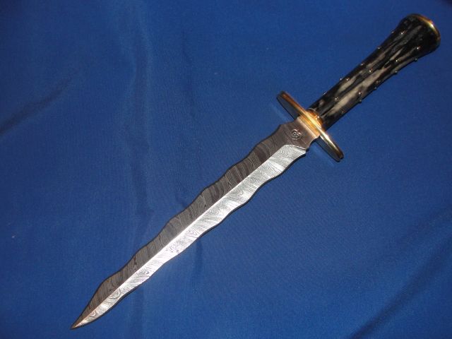 Item No. 02 is one f the canceled "wedding daggers " with a "flame blade" forged from1084 and L-6 steel Blade length is 7 1/2".