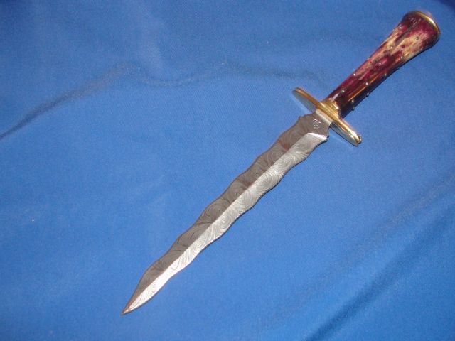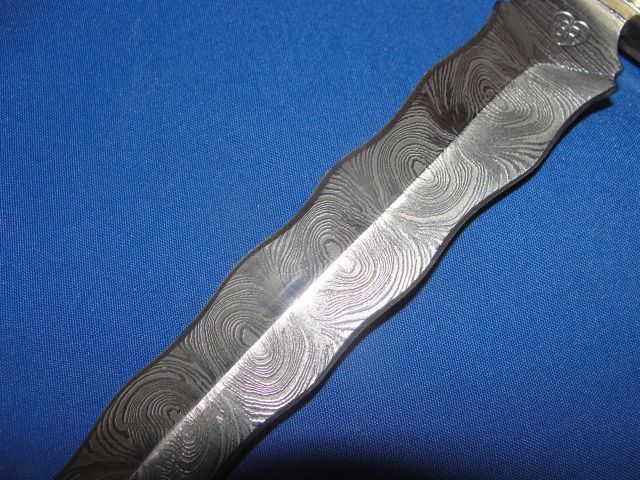 Item number 03 is a very nice 'fame blade" dagger.. forged from1084 and L-6 steels...this is one of the 'wedding daggers" that were canceled.  The blade length is 7 1/2"