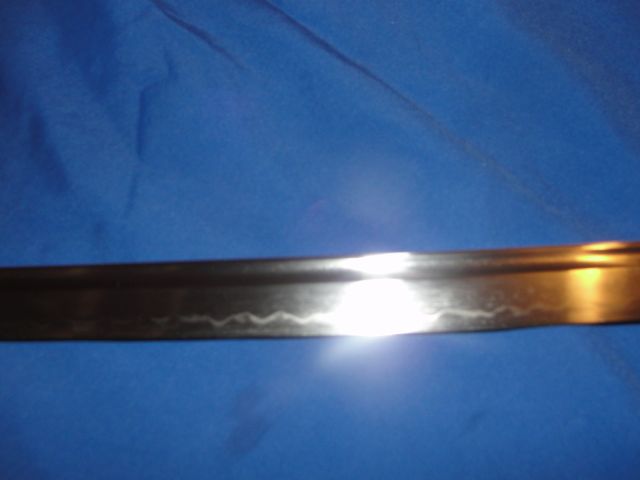 The Hamon is quite lively and shows a great deal of "frost".. It took me a rather respectable amount of time to polish this sword. along with a whole bunch of butterfly sutures and bandages.. WARNING this blade is SHARP and being so very long...be very careful when handling it.