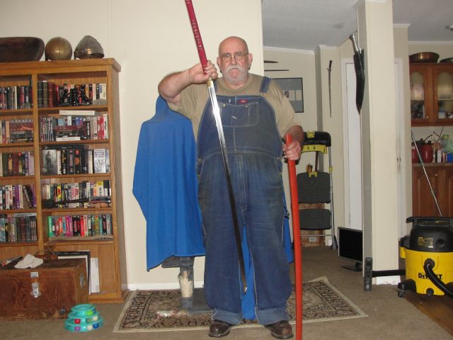 Item No JS 02 is a HUGE No--Dachi.. aka "Field Sword".. This is a monster of a sword and I mean it is a real beast of a blade. I have no idea as to what I was thinking when I made this really..I just wanted a sword that was along the lines of the sword used by Kikuchyo in "The Seven Samurai".. This is the largest sword I have ever made. I will not be making another one this size.. This was the last sword I made when we were still in Nevada..